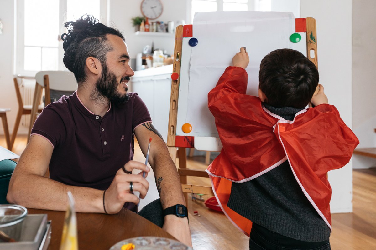 J’ai d’abord fait ce choix par conviction féministe : selon moi, les papas peuvent aussi se prendre en main pour que l’égalité hommes-femmes avance. J’ai aussi choisi ce mode de vie par conviction pédagogique : il a été prouvé que c’est très important pour le développement d’un enfant d’avoir une « personne référente » quasiment tout le temps avec lui les premières années. Du coup, quand j’étais avec mon fils, j’étais à fond avec lui et quand je travaillais, j’étais à fond pour lancer mon activité. Je bossais le soir, le week-end… J’ai eu de la chance que ça se soit bien passé, même si ça a été épuisant : j’ai rarement autant pleuré que ces trois années-là !