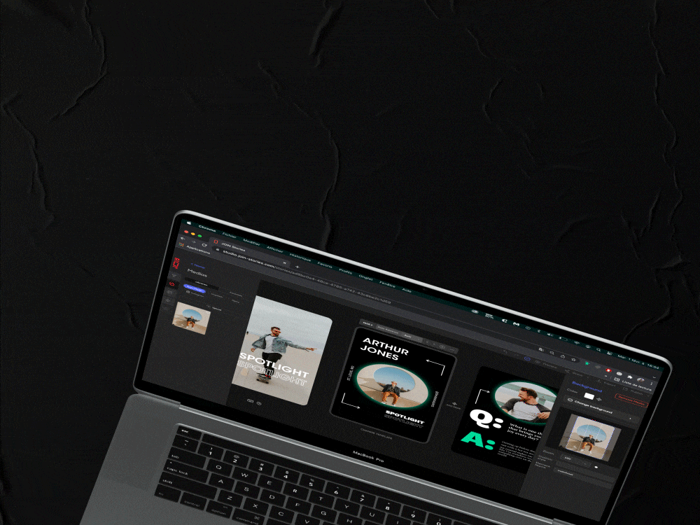 All the tools you need: Macbook Pro & noise-cancelling headphones.